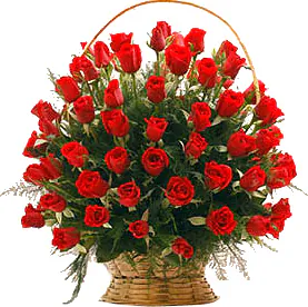 Composizione in cesto di rose rosse a gambo medio. Niente di più bello! Consegna inclusa nel prezzo